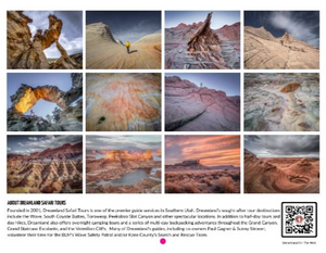 Bring the beauty of the Southwest into your home with this one-of-a-kind 8x11 wall calendar featuring original photography from one of Dreamland Safari Tours' many incredible backyard destinations.